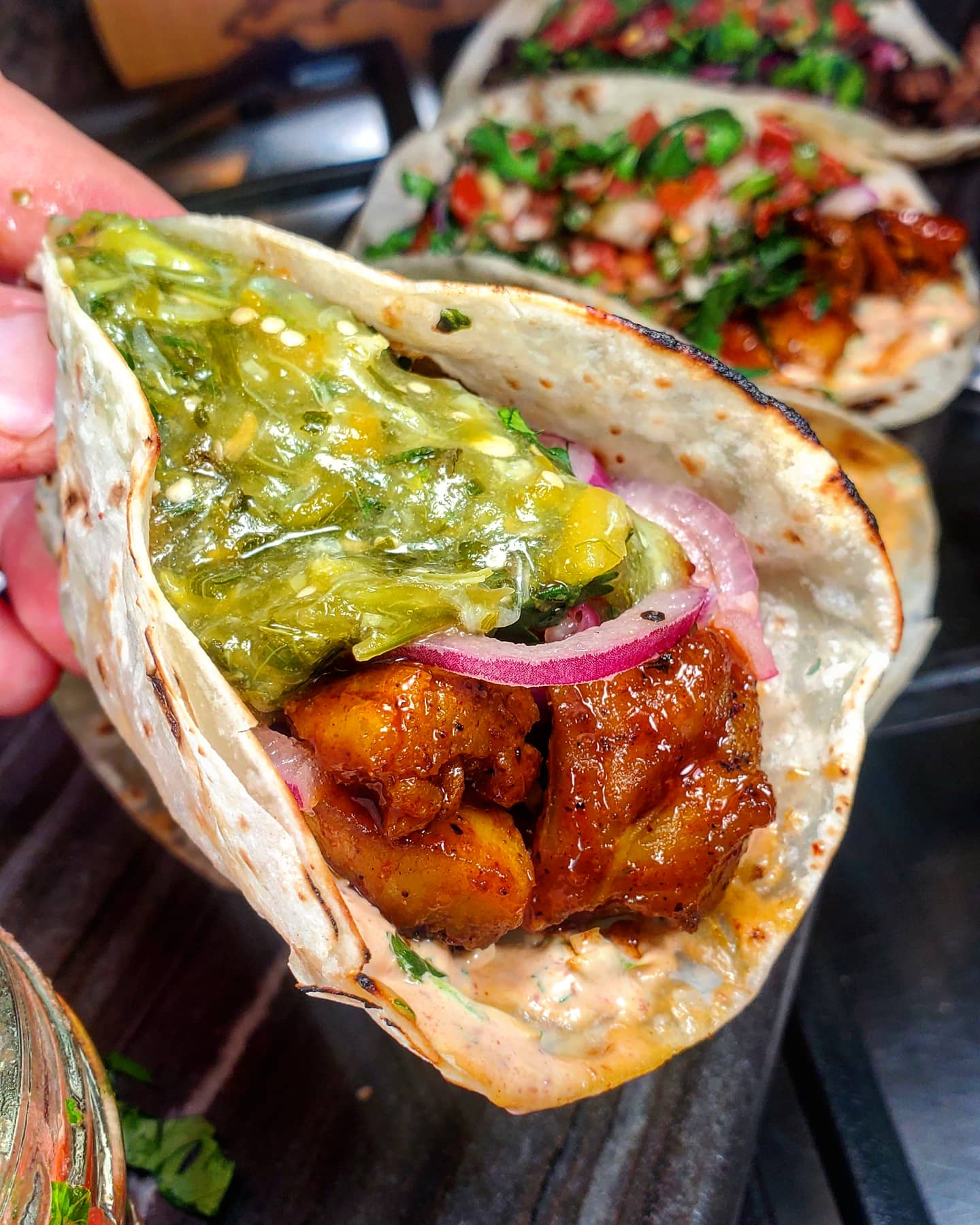 No extra hot sauces just tortillia , meat, and salsa and MAN was it was delicious.