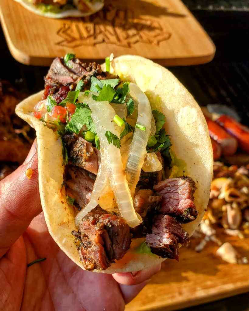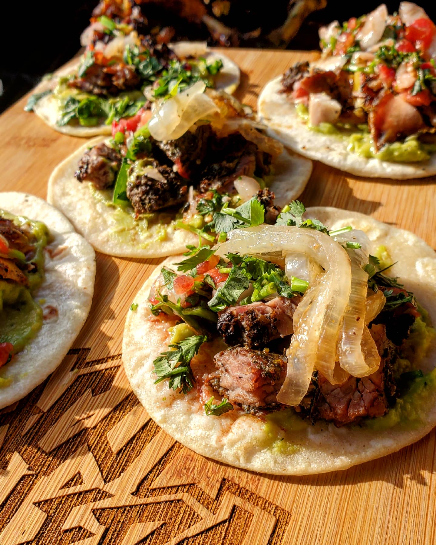 After whipping up a simple pico de gallo I hit the @charbroilgrills with some marinated steak, dry rubbed chicken, some smoked sausage and onions. After lathering up a few tortillas with some @yucatanguac