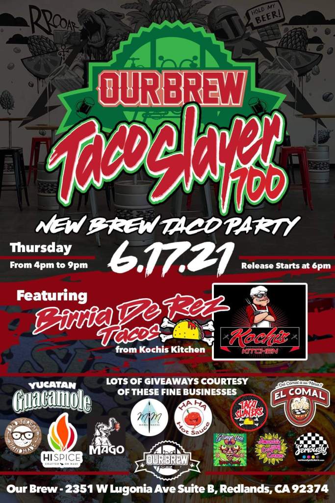 Next Thursday is the @ourbrew TacoSlayer700 Release at the Brewery in Redlands.