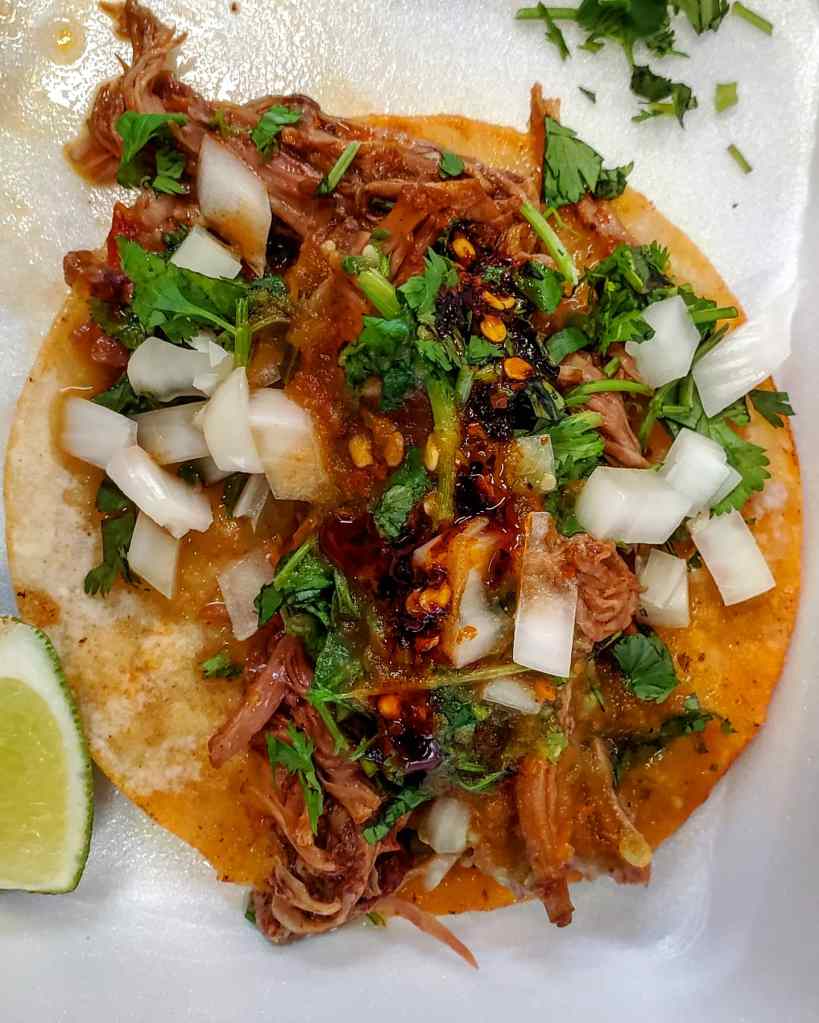 Chris from Kochis knew i had a thing for heat so he passed on a tiny container of his homemade chile oil which really set this taco on fire. Also available was a side of pickled red onions made their way to my tacos as well. Sooooo freaking good.