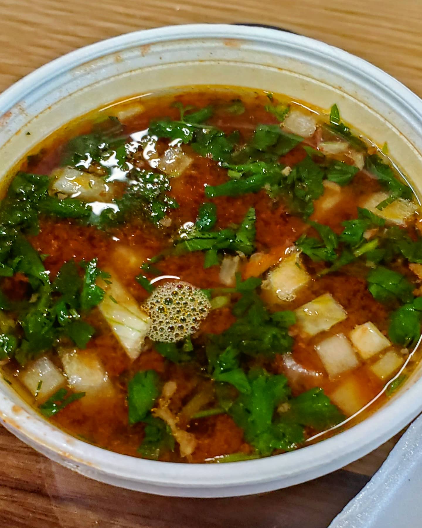 The meat had been slow cooked for HOURS before they arrived at the brewery and it was freaking tasty. Each taco started with a pair of corn tortillas that get dipped into the consume sauce and dropped on to a flat top. A generious helping of birria de rez graced the tortillas before being topped in fresh cilantro and onion. Next a couple drizzles of both red and green sauces hit the tacos and a side of consume is added to the plate.