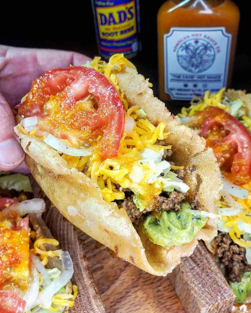 I finished these tacos off with a plentiful pour of the @honoluahotsauceco “the cave” hot sauce. I’m a sucker for a killer habanero sauce and this was just that plus it had the additional flavors Hawaiian chile peppers, and pineapple and just the right amount of heat.