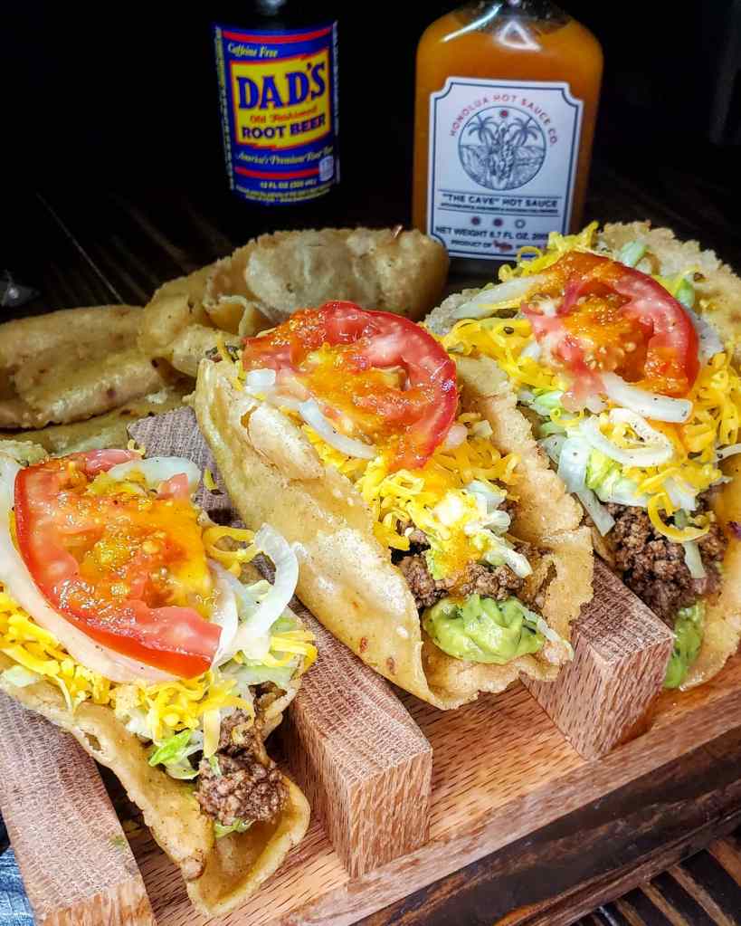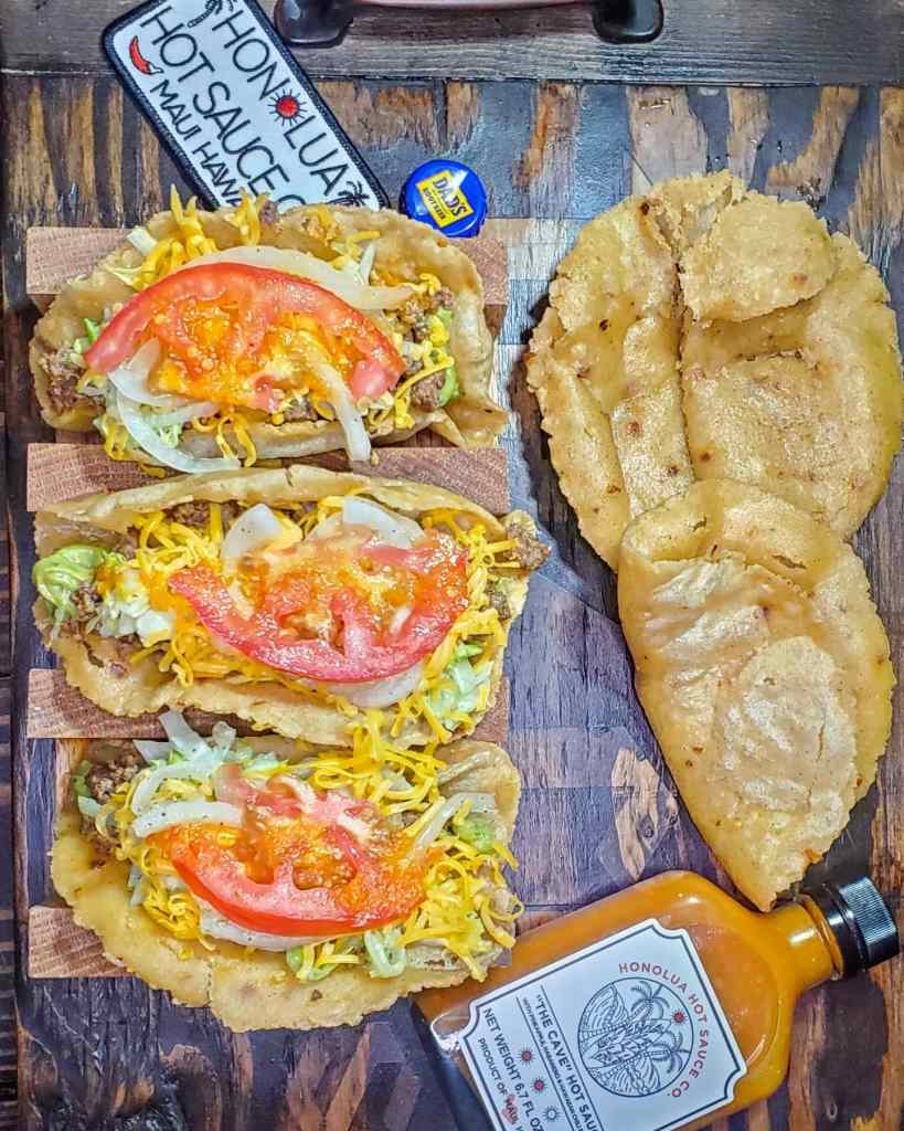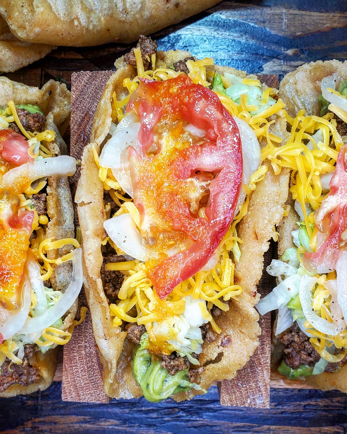 Every couple weeks we have to throw down some killer puffies stuffed full with all the usual suspects: seasoned ground beef, @yucatanguac , lettuce, tomato, and cheese.