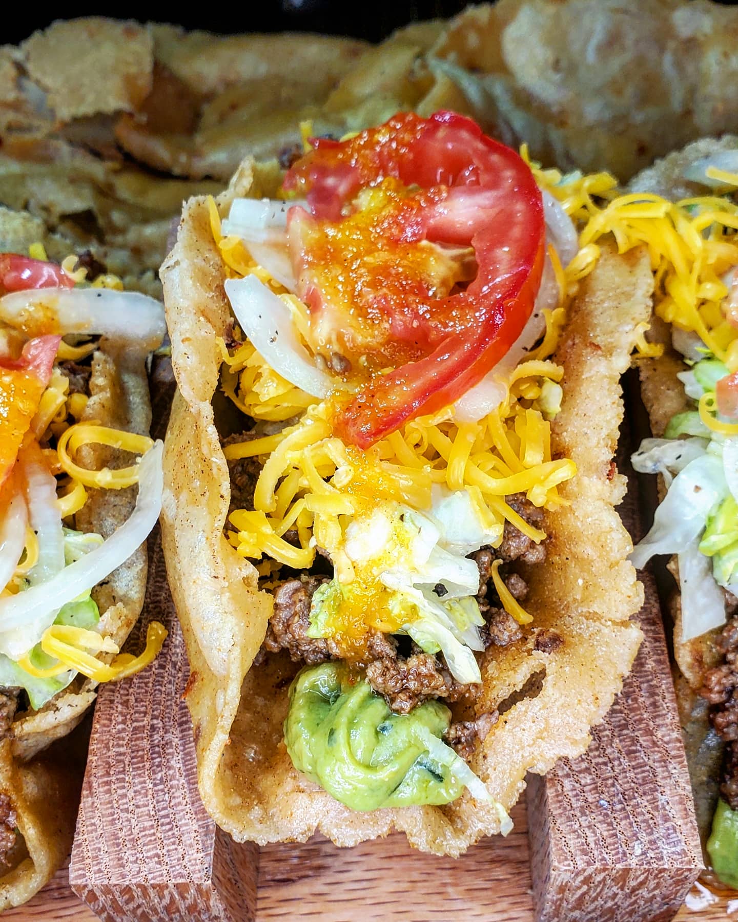 Filling these tacos up is definitely the easy part while constructing these tortillas are the real struggle. The tortillas puff up in the hot oil because the masa hasn’t been cooked yet and it’s still in its raw form. Once you flatten out the masa you place your raw tortilla shape inside the oil and while frying you only have about 15 seconds to get the tortilla into its final shape. If it doesn’t cook fast enough your utensils with rip holes through the tortilla and if it cooks too fast it will break before you get the opportunity fold it into its proper form.