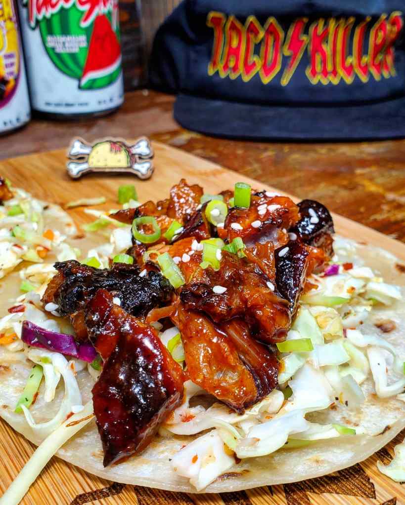 With the left over RIB meat from our Sunday BBQ we covered it in Sticky Spicy Wing sauce from @kogibbq and turned it into a killer taco.