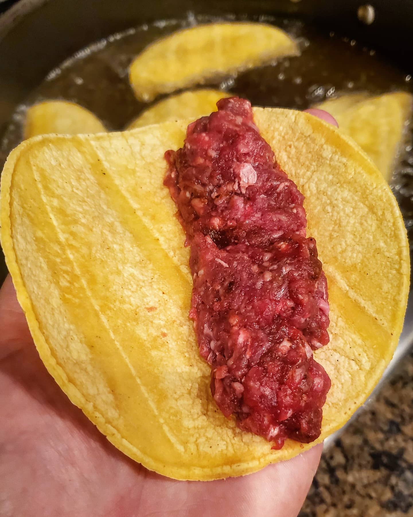 Last night I whipped up a solid round of golden fried tacos. This process of making tacos is one of the most interesting things that I’ve learned on this taco journey.