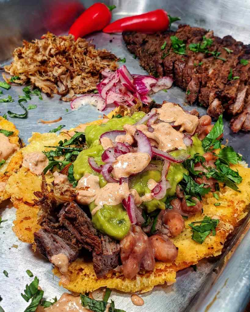 Carnitas has a pretty substantially different flavor profile than carne asada but how would it taste paired directly with its barn yard rival in one killer taco? Let me answer that for you…..it’s tasty af!