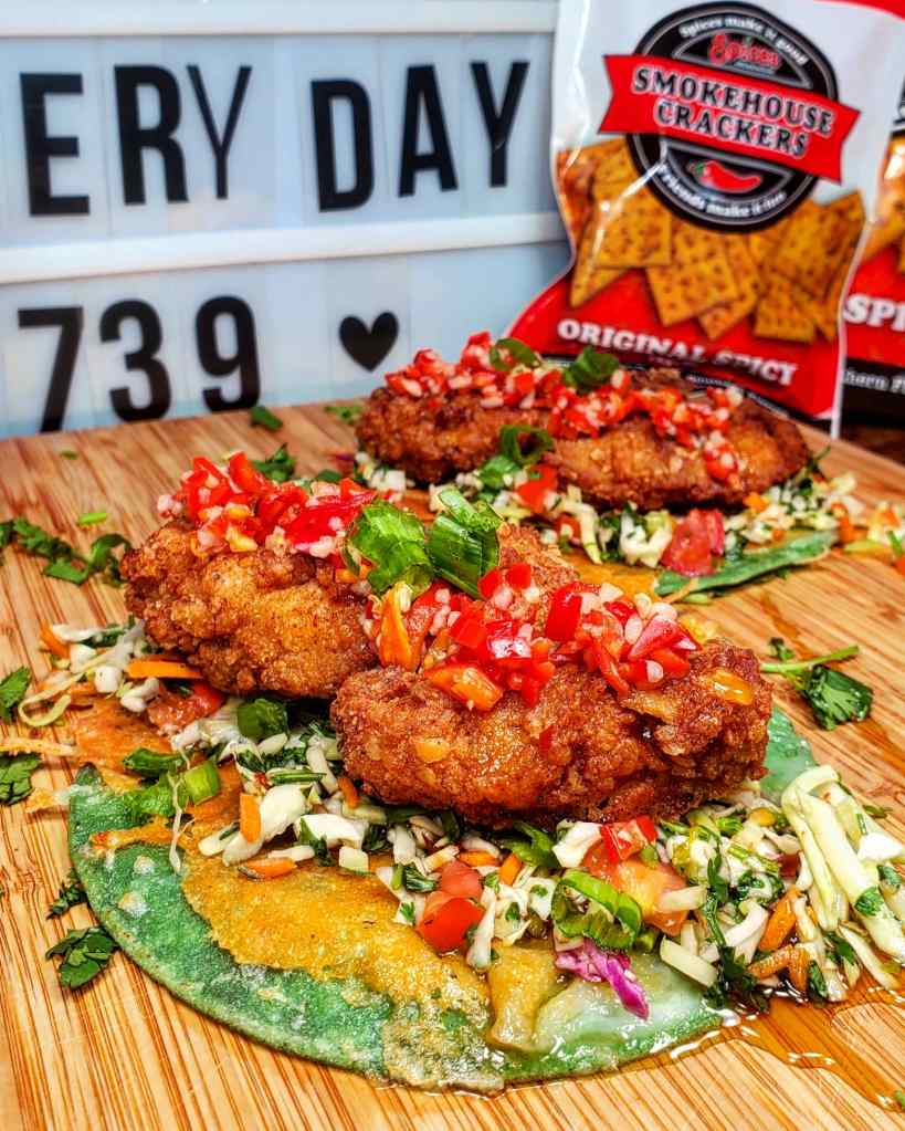 SMOKEHOUSE CRACKER COVERED FRIED CHICKEN TACOS