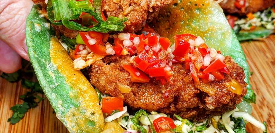 SMOKEHOUSE CRACKER COVERED FRIED CHICKEN TACOS