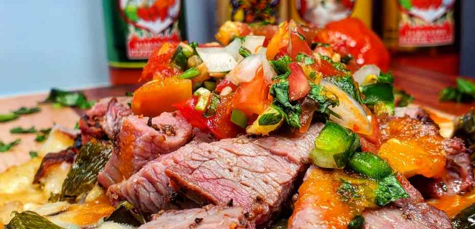 After my wife brought in a load of killer Purple Cherokee tomatoes she grew, my first thought was to make a killer pico de gallo. And a tasty qued up beef tri-tip is definitely the perfect partner to pair it with.