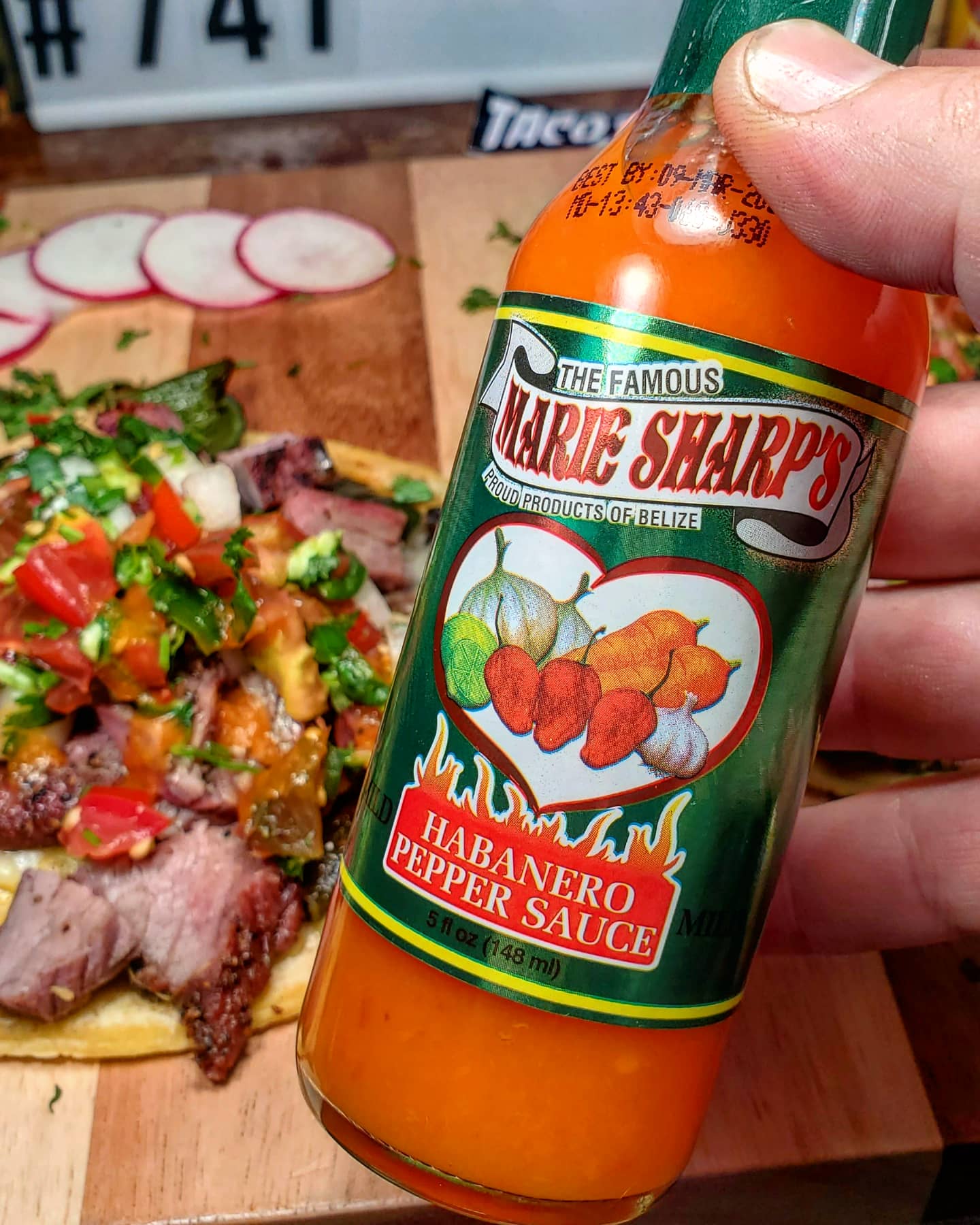 Corn tortilla. I followed that with a scoop of the tri tip, salsa and a few drops from the Original Habanero sauce @mariesharpsusa !! OmG soo freaking good.