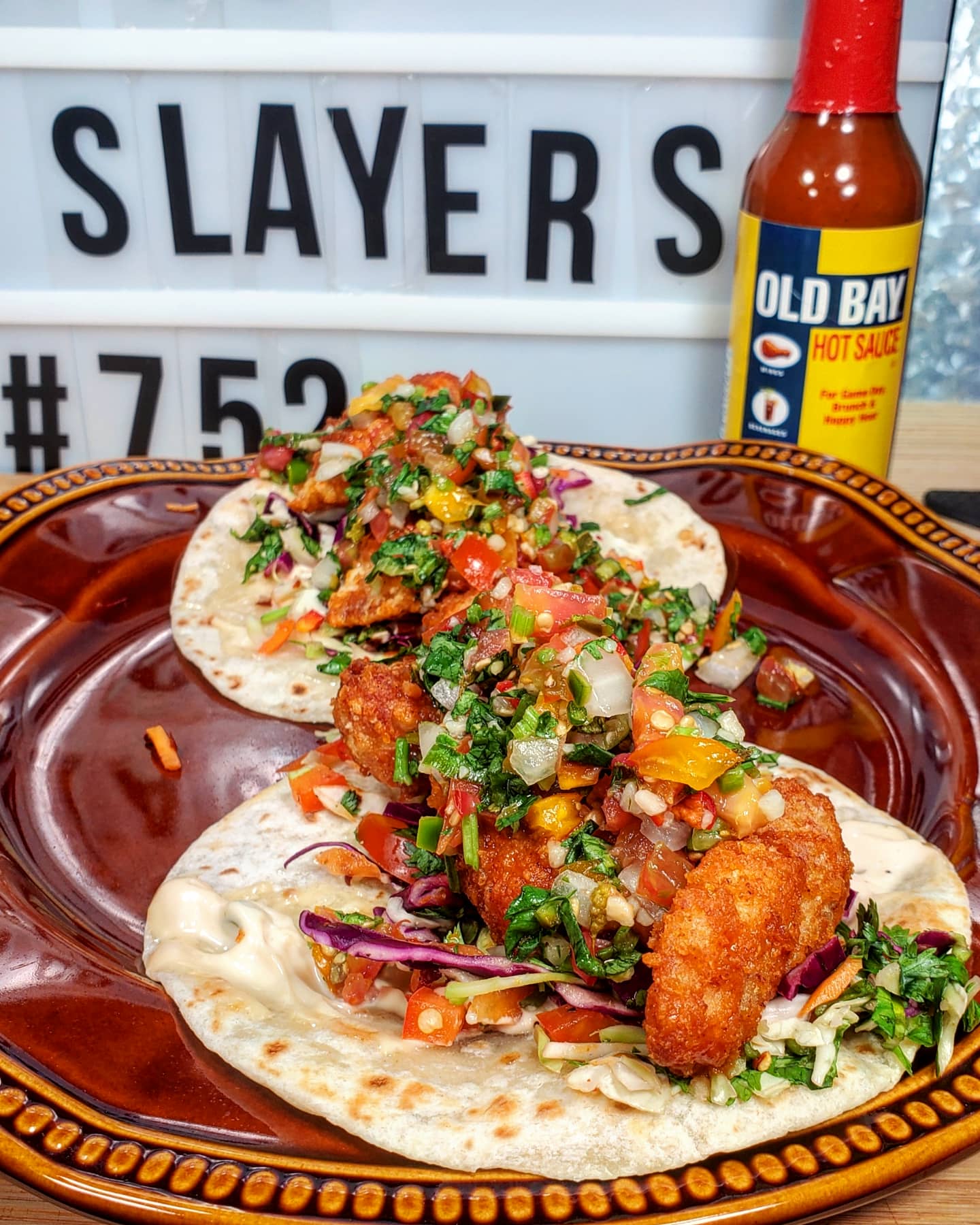 OLD BAY CHICHARON CRUSTED FISH TACOS