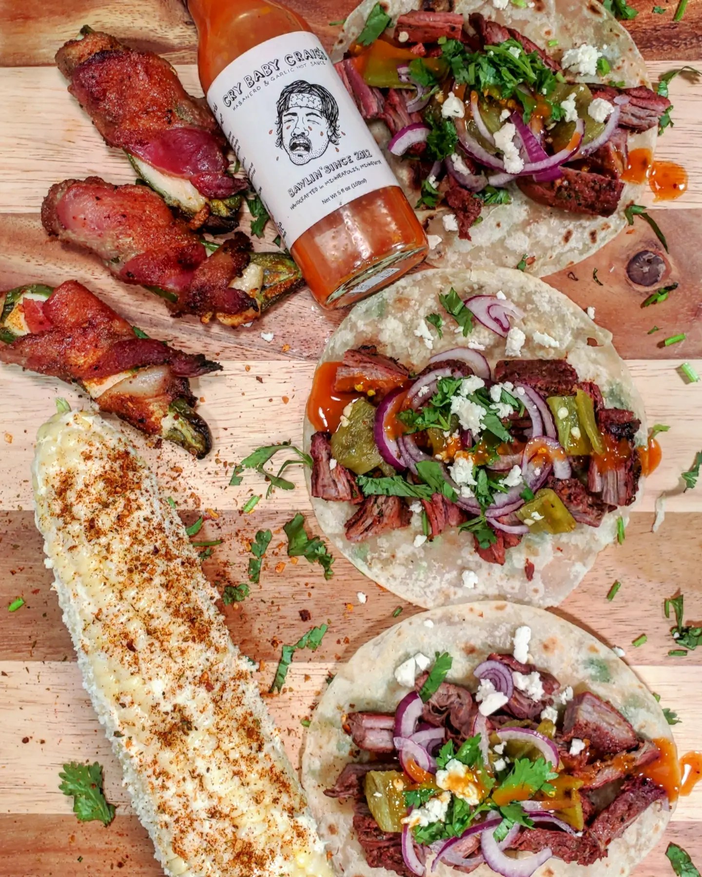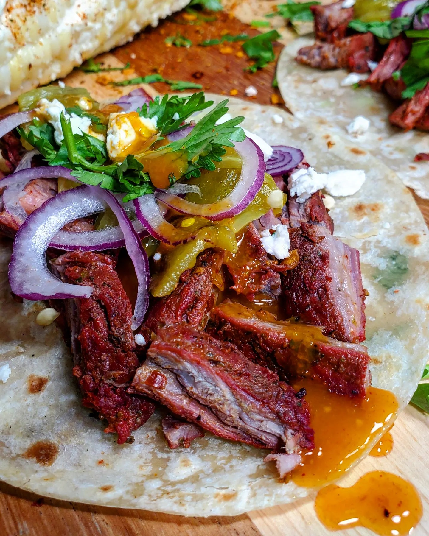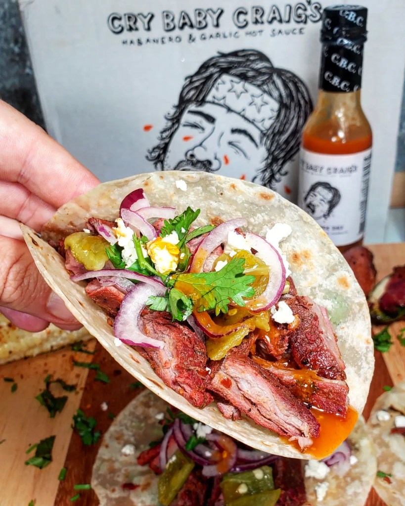 These tacos came together on a flour tortilla. I stacked in the meat, Anaheim peppers, cilantro, fed onions, a little queso and finially a fat drizzling of the Minnesota brewed @crybabycraigs Habanero & garlic hot sauce. This sauce definitely packed a killer punch but didn’t overwhelm the tacos. Definitely a solid sauce and a wicked dinner.