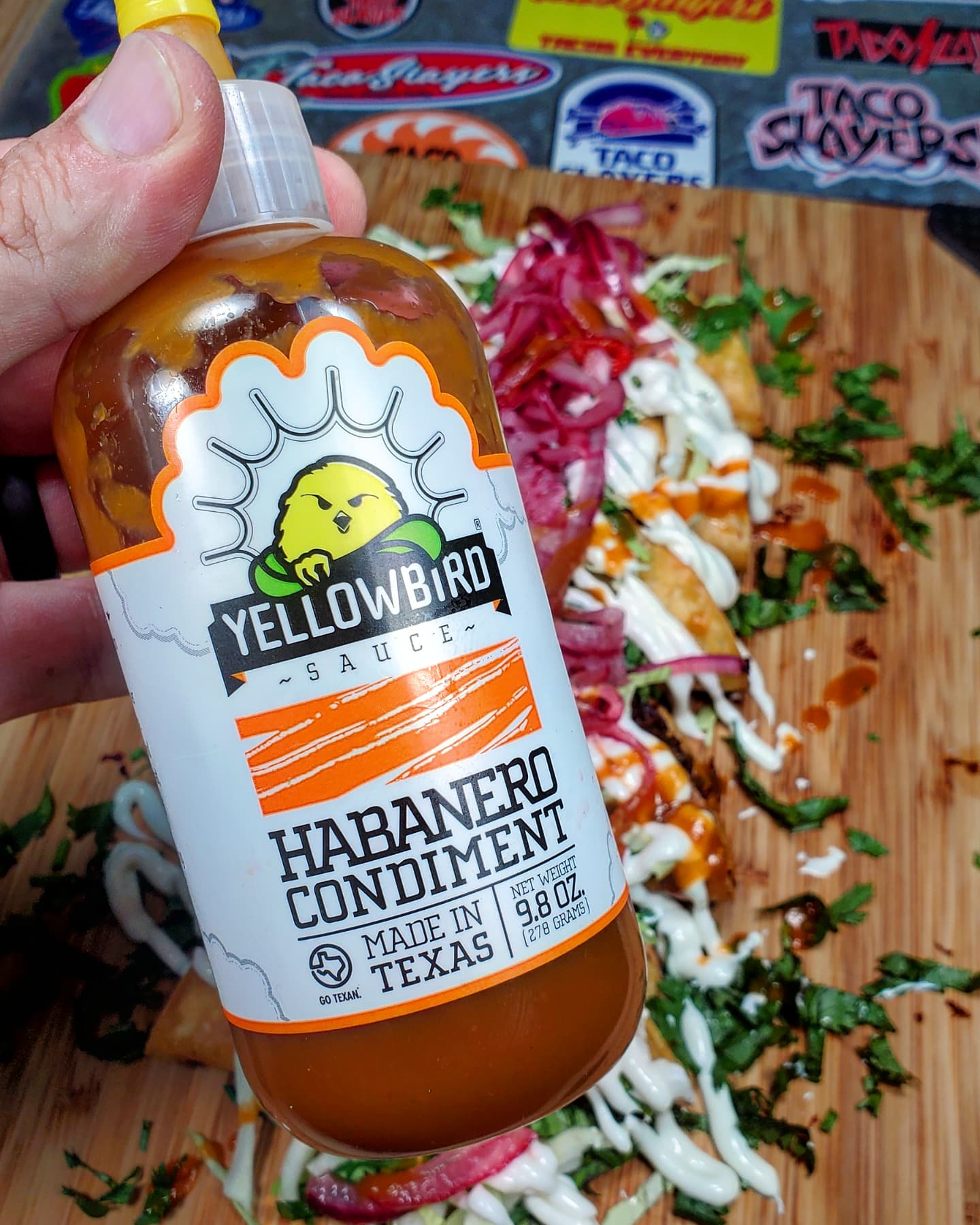 Then I finished up these tacos with a very generous pouring of @yellowbirdsauce Habanero to elevate the heat factor on these tacos….good vibes and great flavors.