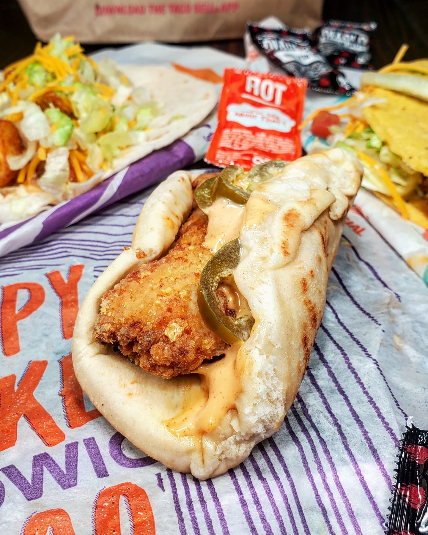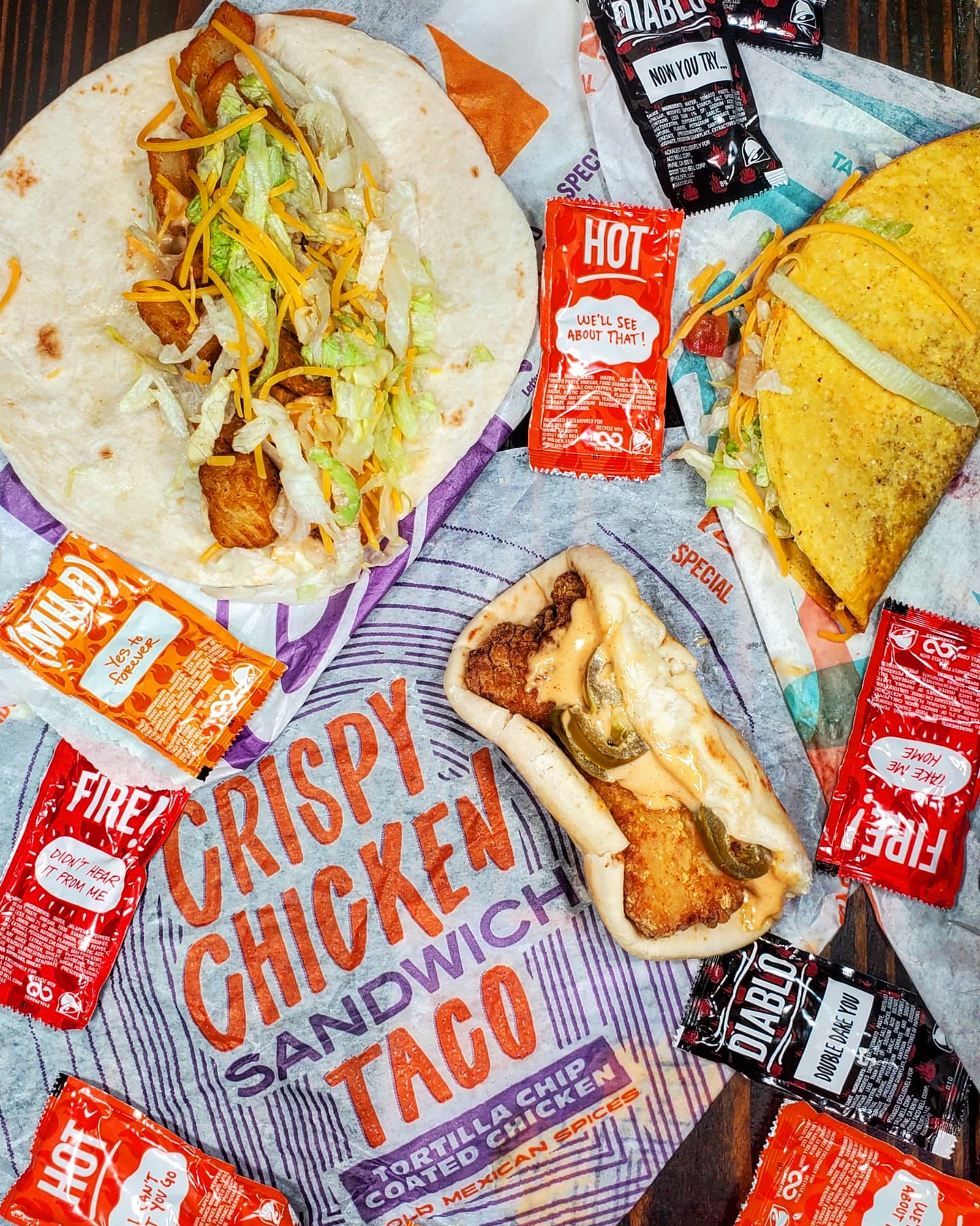 CRISPY CHICKEN SANDWICH TACO, REGULAR TACO, SPICY POTATO TACO