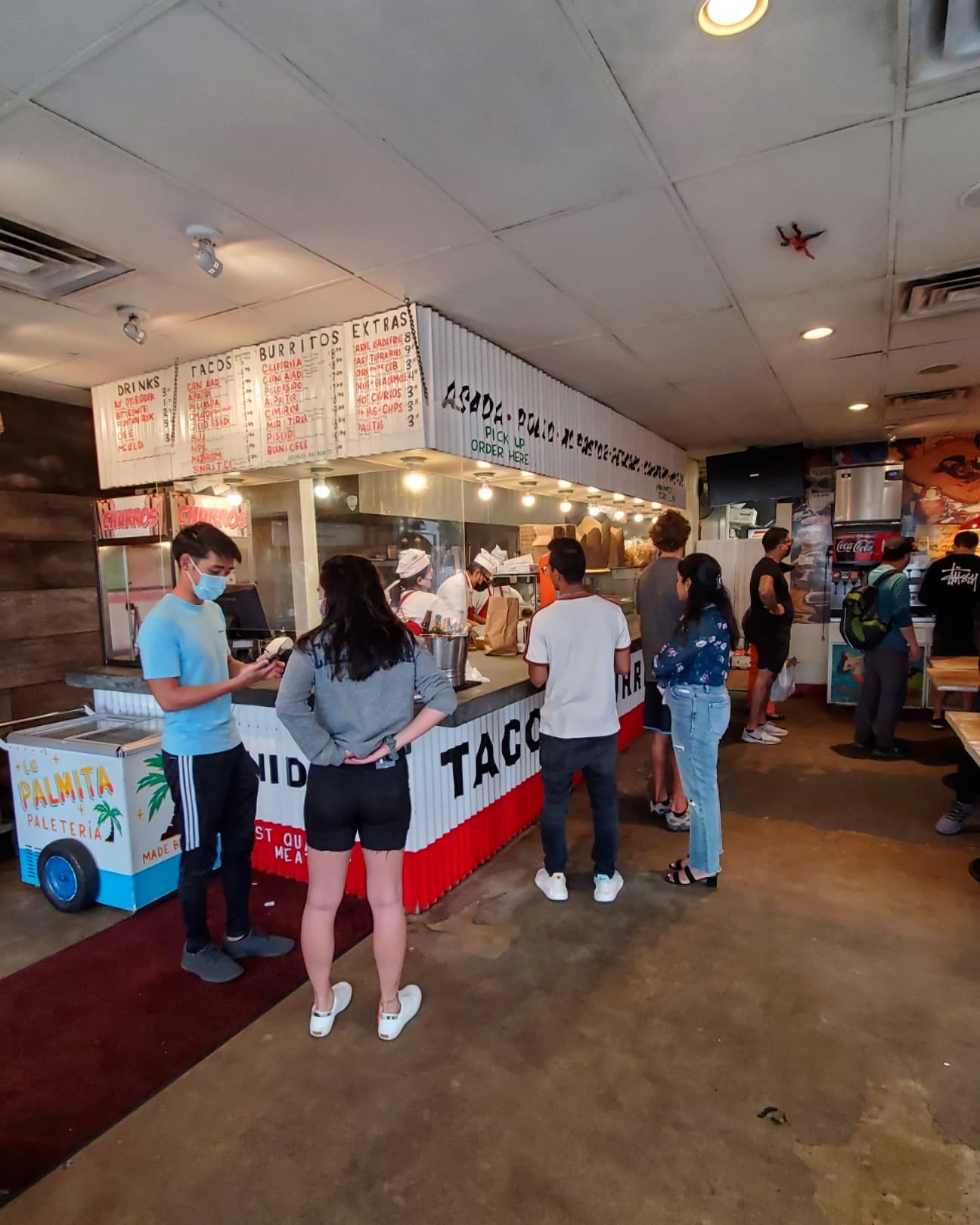The Taco Stand is basically non stop busy from the moment they open their doors, however it is worth it. I ordered up an Al Pastor taco and a Sonora Taco.