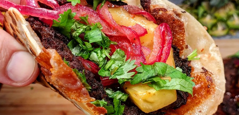 The other day I was making smash burgers for family and I stuffed a few patties into a tortilla with Teriyaki sauce, pineapple, cilantro, and red onions. They were sooooo darn tasty and while in the moment I did it on the fly, I really wanted to revisit those tacos and give them a proper go.
