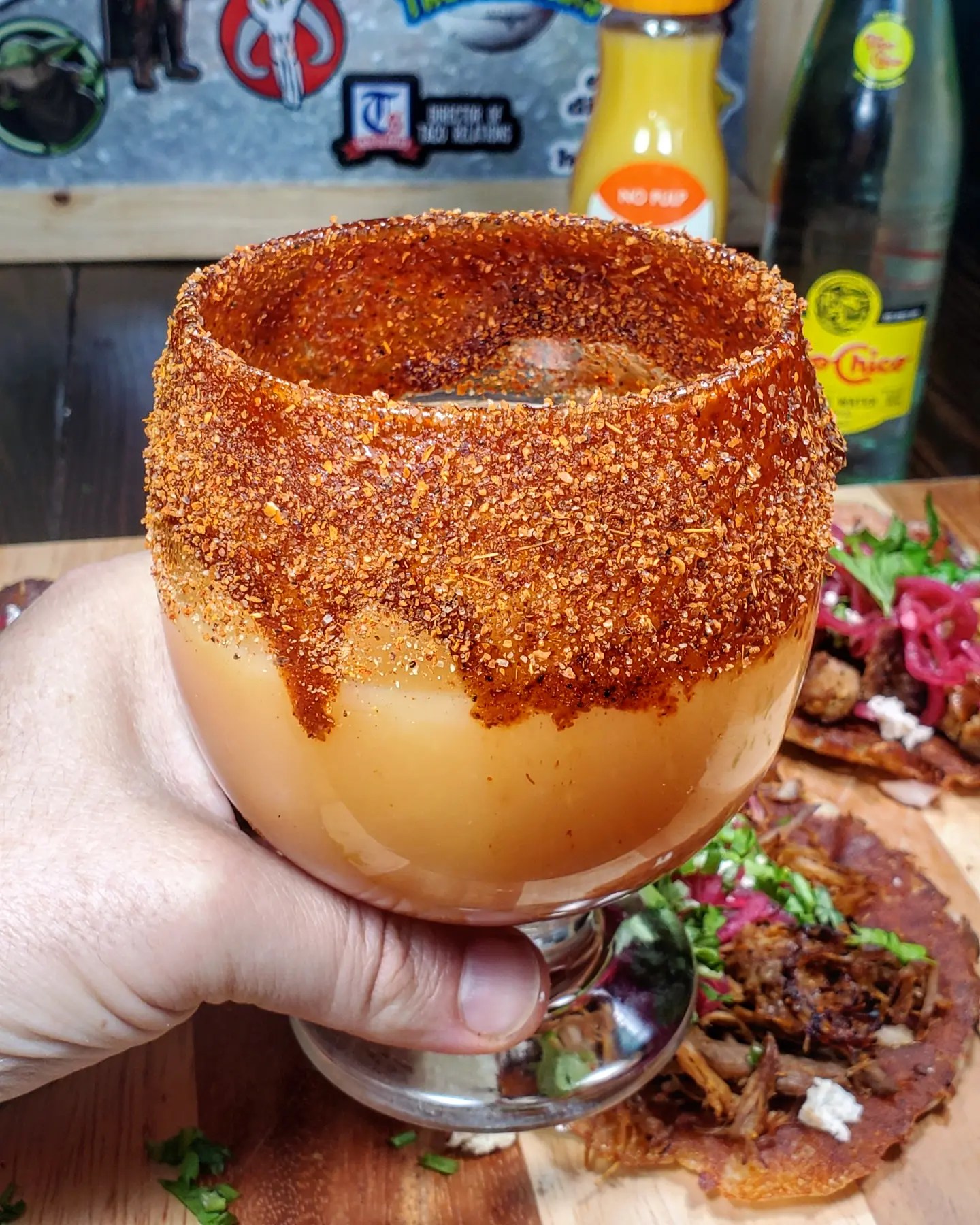 Afterwards, I washed down these tacos with a tasty OJ, Strawberry/peach, & @topochicousa mock tail topped in @gringolocobeercandy and @tajinusa