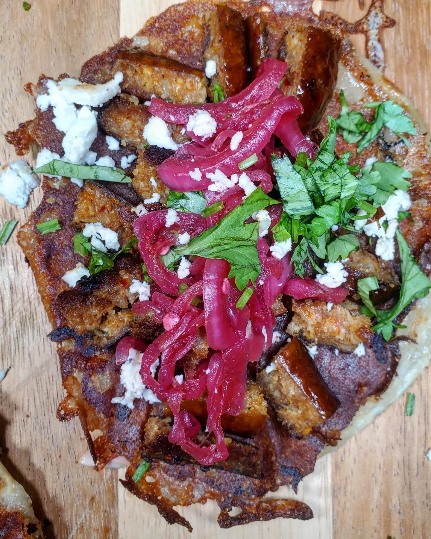It was time again to clean out the fridge of any leftovers before they went bad. I used a variety of meats including chicken, chorizo sausages, and pulled pork.