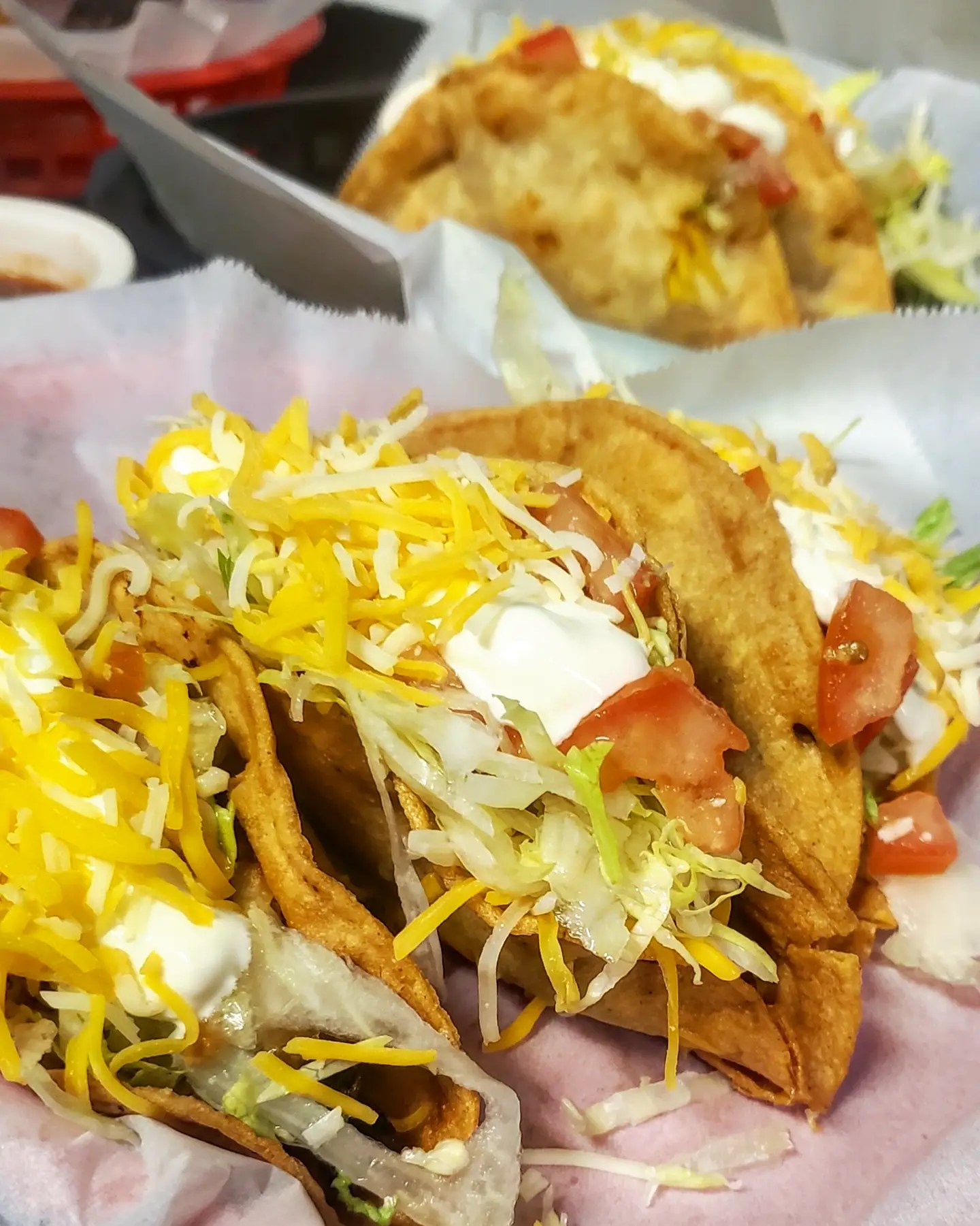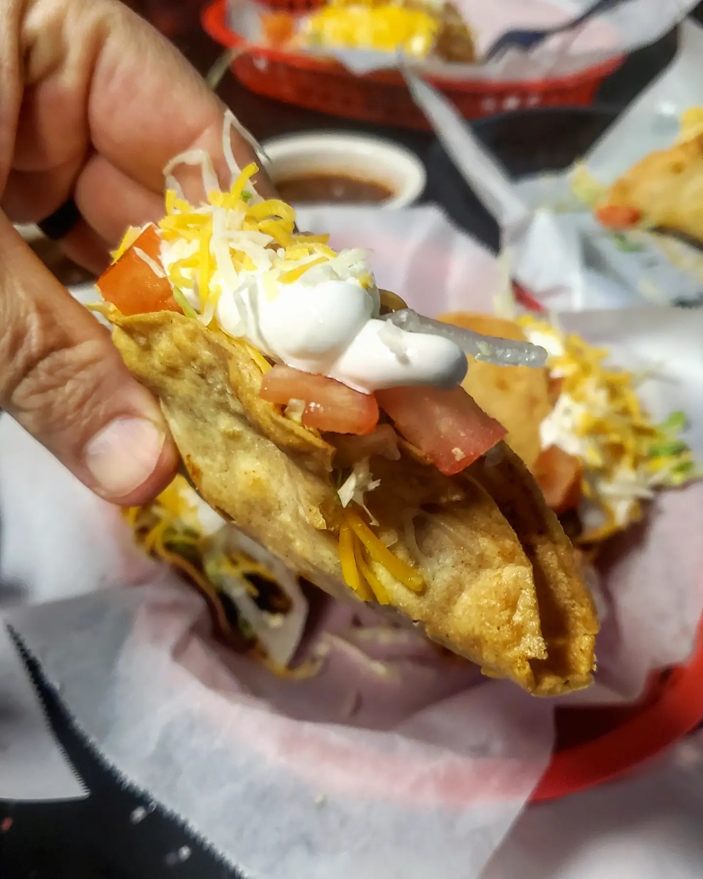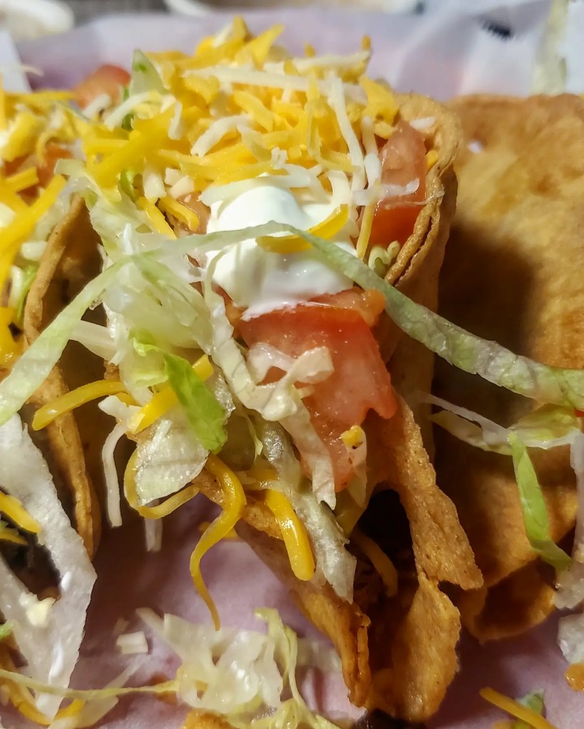 After ordering 2 crispy carnitas tacos, 2 crispy shredded beef, 2 crispy chicken and 2 crispy potato I asked the young cashier if she had a favorite taco here. Her response was “the green taco is pretty popular ” so I ordered up one.