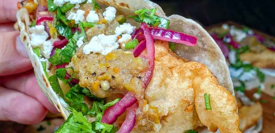 FRIED SQUASH BLOSSOM TACOS