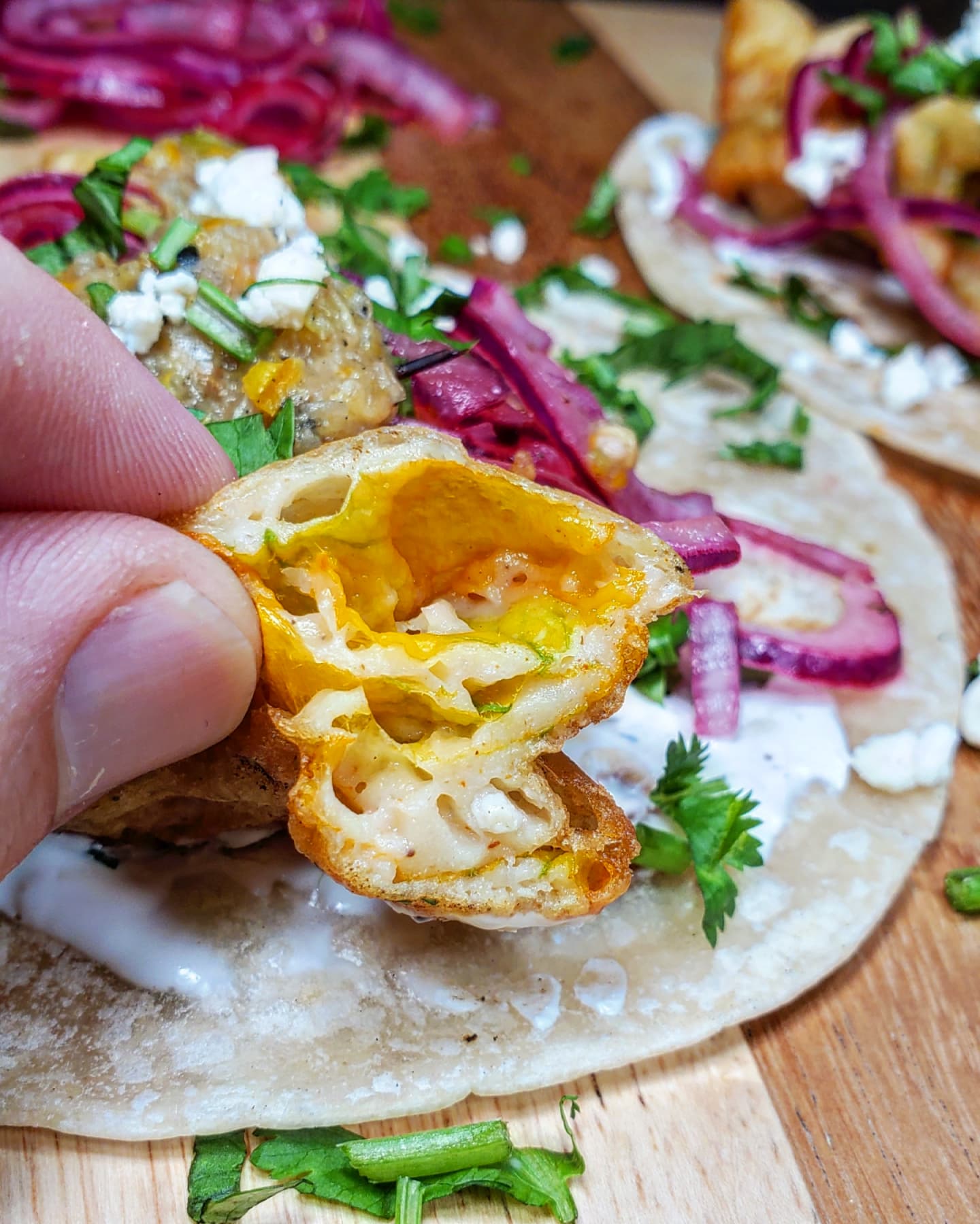 Tried something new last night that I’ve never tried before, some stuffed and fried squash blossom tacos.