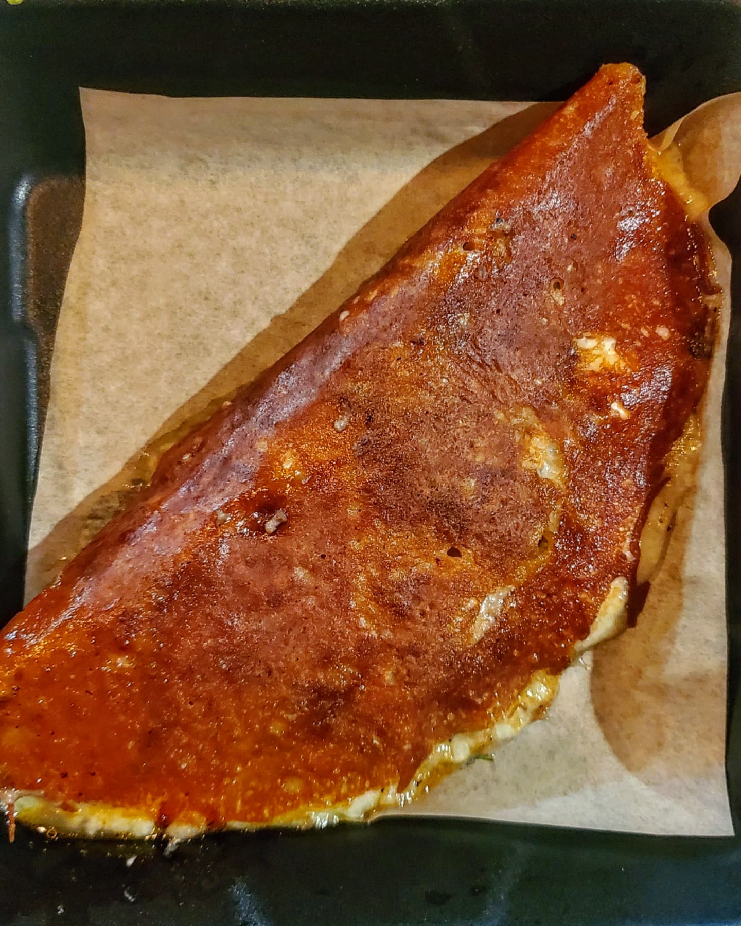 The second taco work of art is a quesa x taco which replaced the tortilla with massive amounts of cheese and is filled up with birria de rez, cilantro, onions, sour cream, and green sauce.