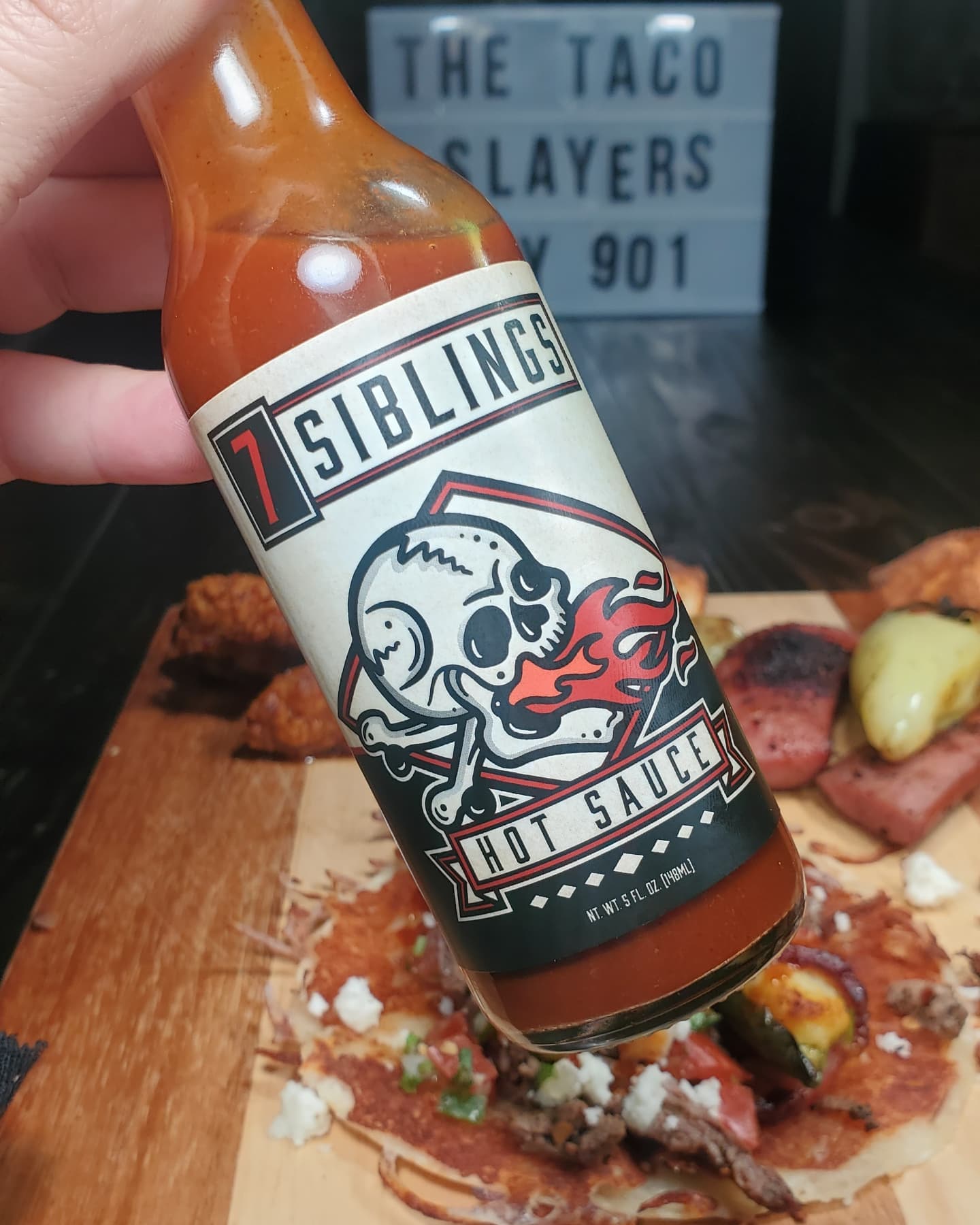 On the grill I cooked some carne asada, smoked sausage, and yellow peppers with the ladder making its way into the foundation of some rather delicious tacos. Those tacos also featured a cheesed up flour tortilla, a huge scoop of salsa fresca, cotija cheese, a bacon wrapped jalapeno and a big drizzling of the bbbbombtacular @7siblingshotsauce original hot sauce that I picked up from @thespicysister.ca .