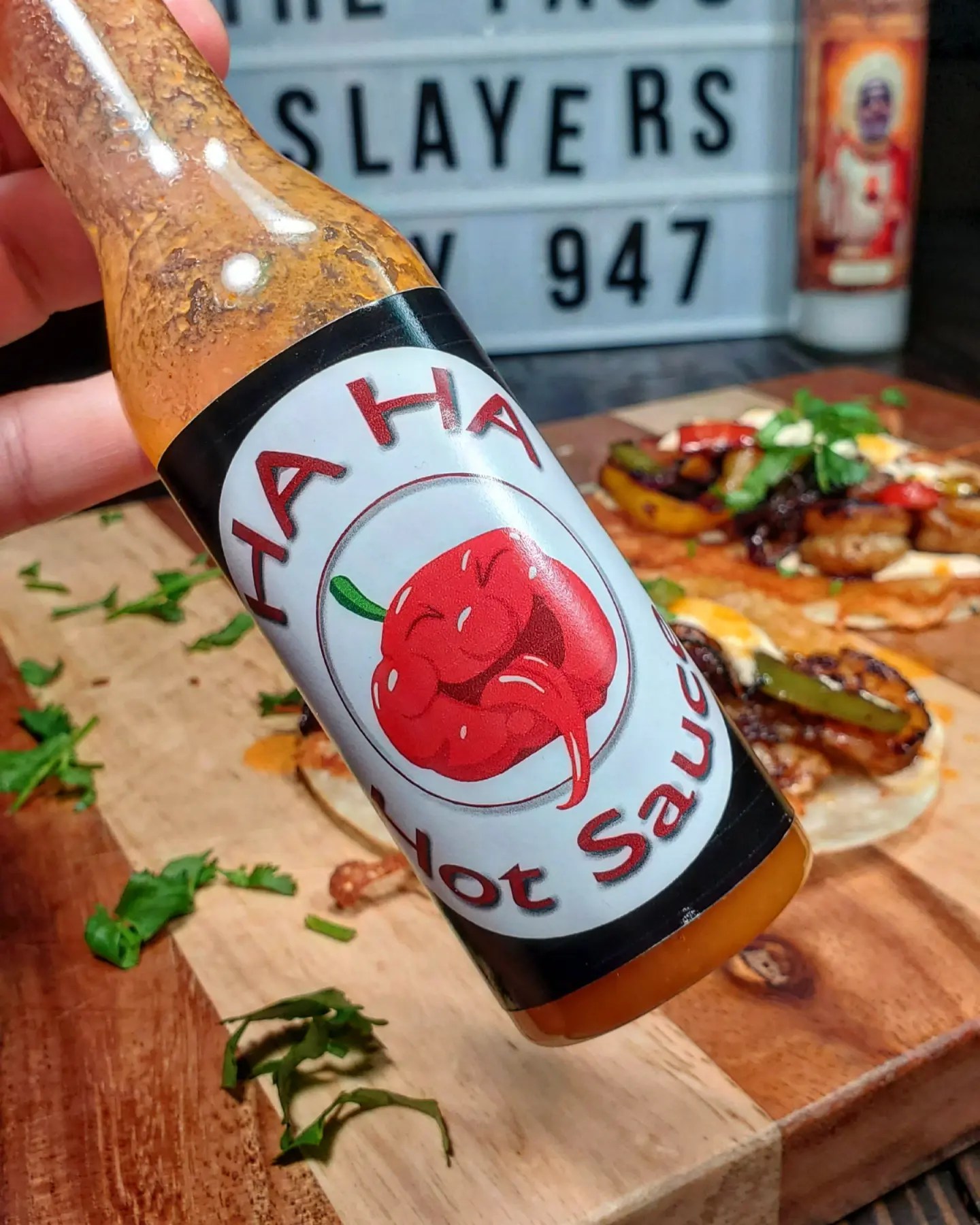 A layer of spicy cream as a base layer on the cheese tortilla followed by a few skrimps and covered in red,yellow,and green peppers and carmalized red onions. Another layer of spicy cream and a HUGE drizzling of my ALL TIME FAVORITE HOT SAUCE, @hahahotsauce from my brother @yatescomedy .