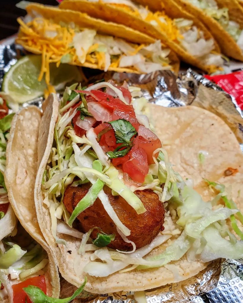 2 Crispy Fish tacos and 4 Regular Tacos with extra hot sauce.