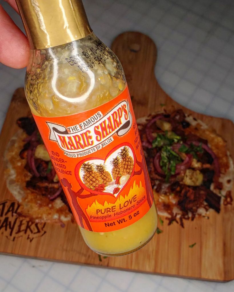 For such a lovely taco I pulled out the @mariesharpsusa PURE LOVE Pineapple Habanero sauce. Little fun fact – Marie Sharp’s is an 80% run by females and this particular sauce gives back a portion of its sales to combat gender based violence in Belize. @mariesharps