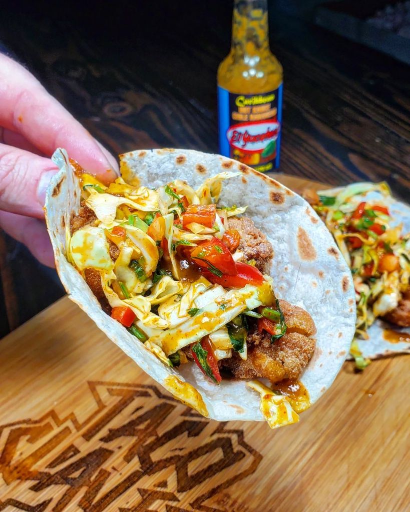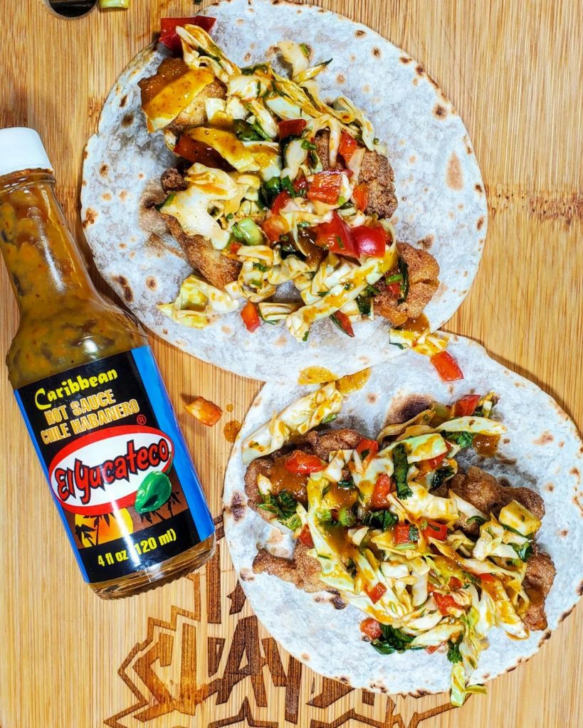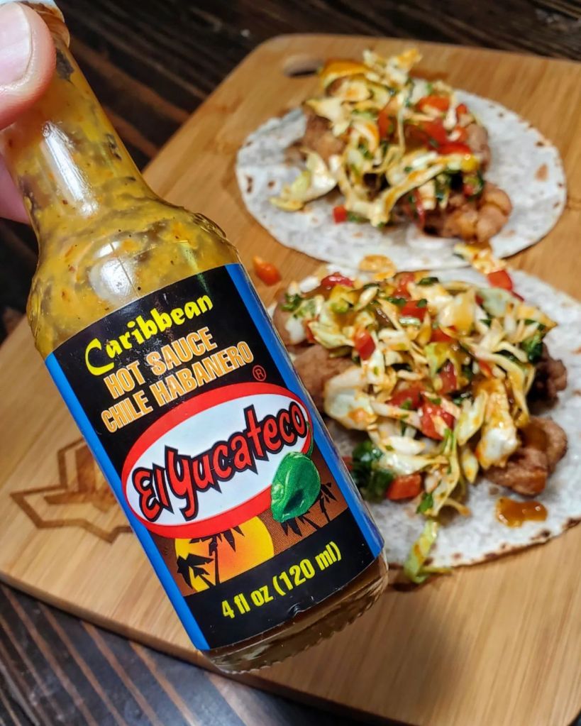 A toasted flour tortilla would handle vessel responsibilities as I piled in both the meat and slaw followed by a few gentle drops of @elyucateco_hotsauce to finish this taco off.