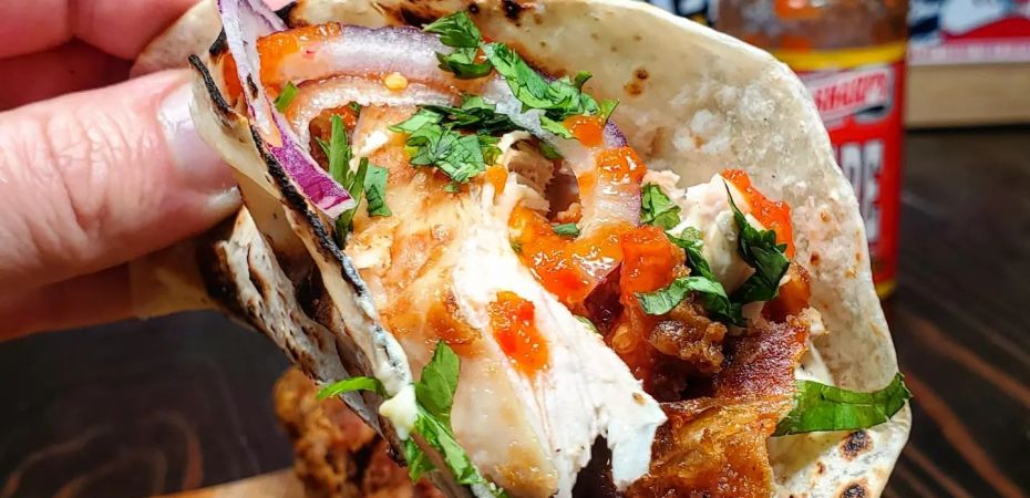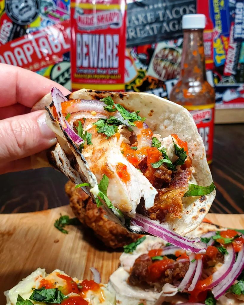 I figured I could taco anything so I grabbed the flour tortillas, cilantro, onion, @mariesharpsusa BEWARE hot sauce and put in some work.