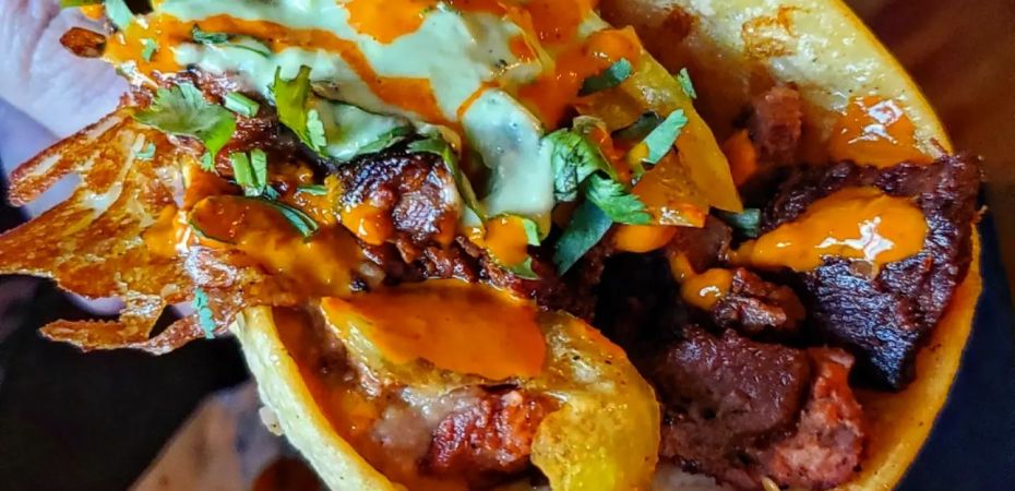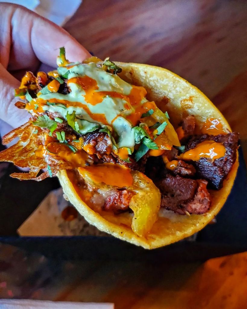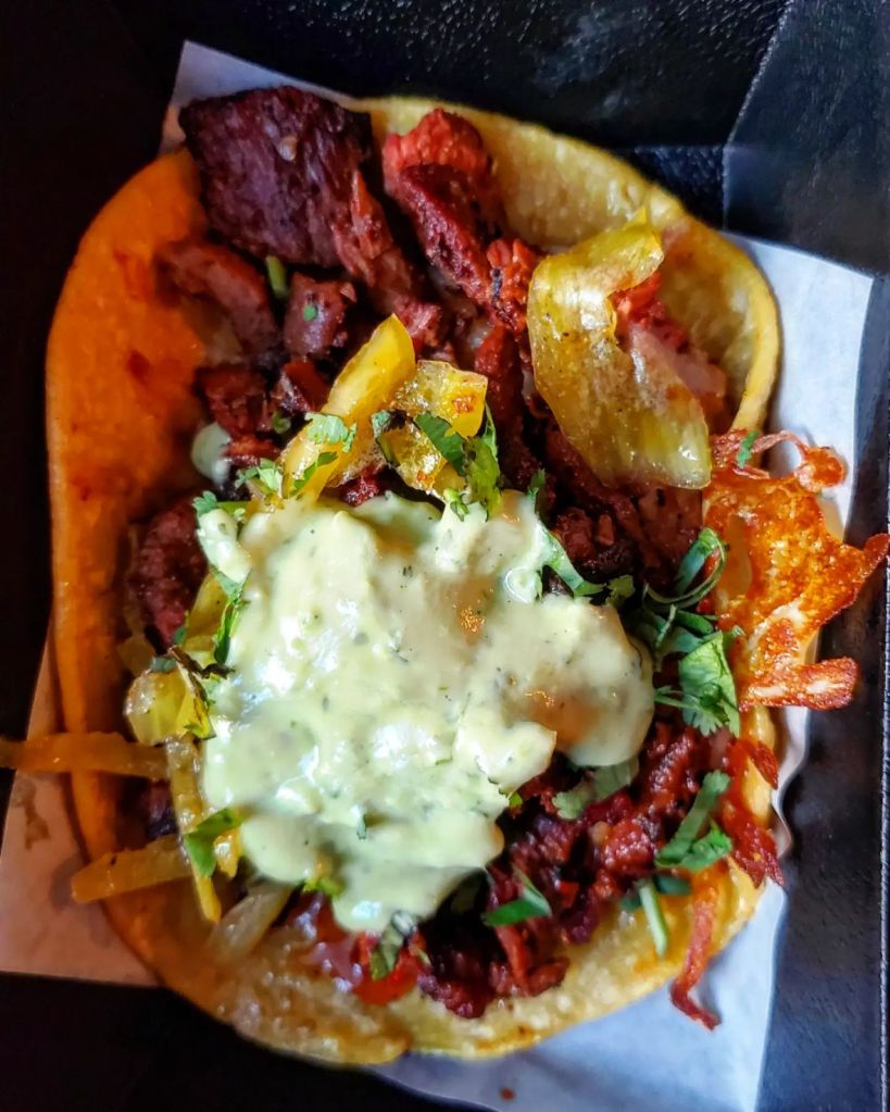 We ordered up all the deliciousness: a round a quesabirria tacos (some of the BEST birria I’ve ever had), the highly recommended shrimp tacos (OMFG they were unbelievable), and a couple Michi STYLE Al Pastor tacos.