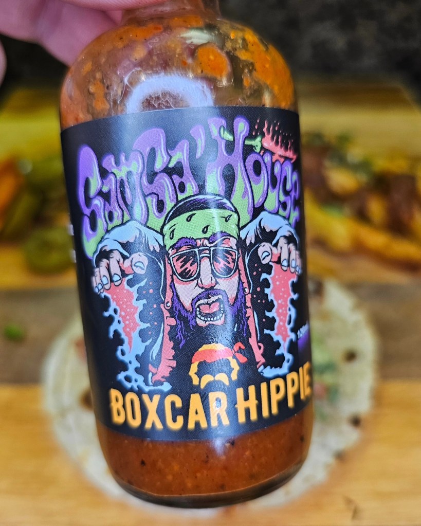 I was privileged enough to try the very killer Boxcar Hippie from my buddy @samsahouse recently, and I was blown away! This sauce had all my favorite things in a sauce: chile de arbol, Trinidad scorpions, roasted tomatoes, lime and cilantro.