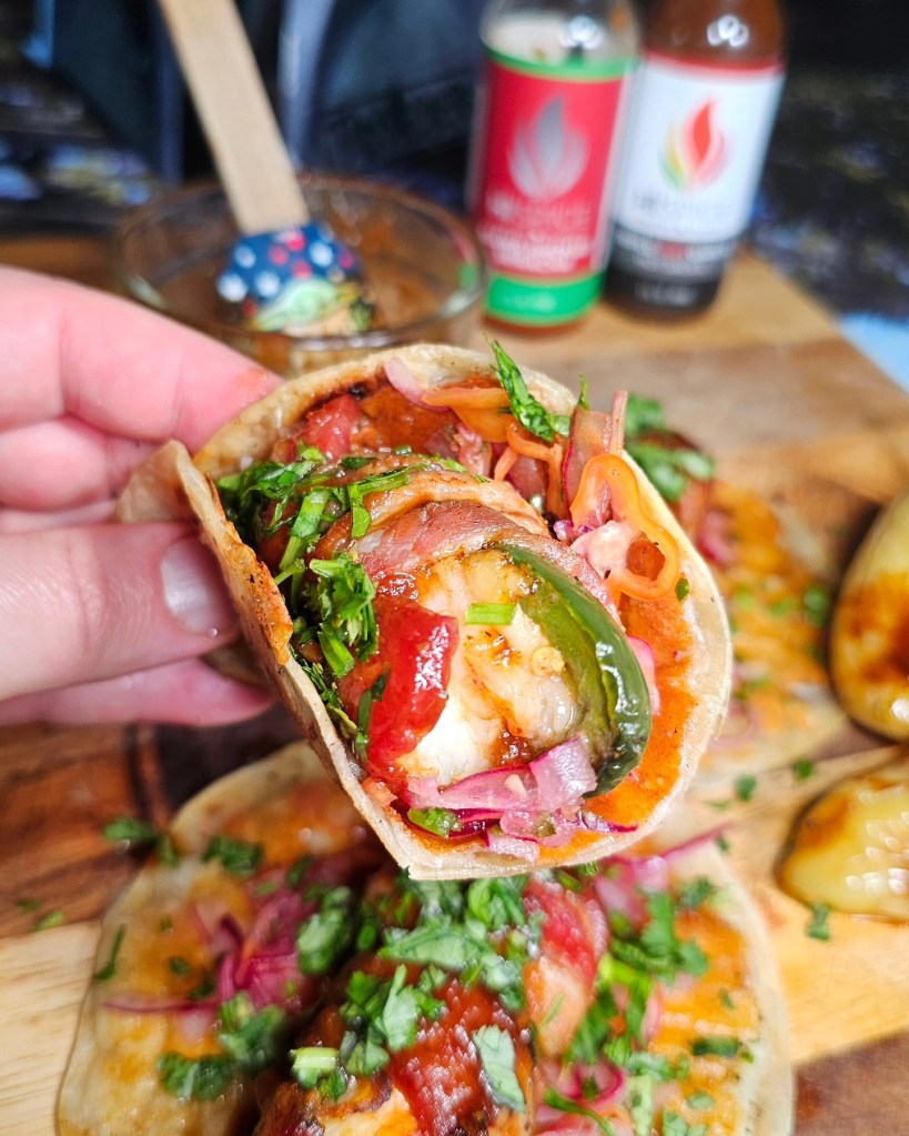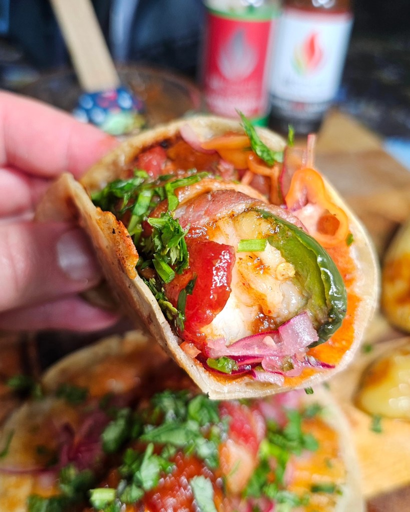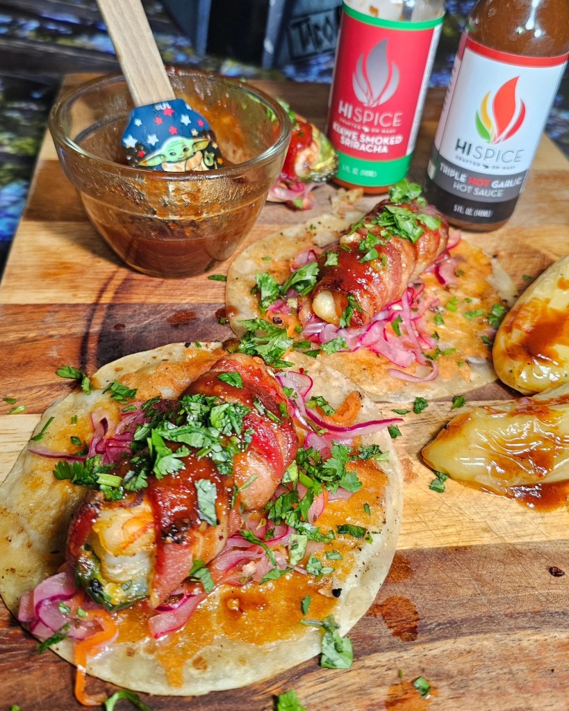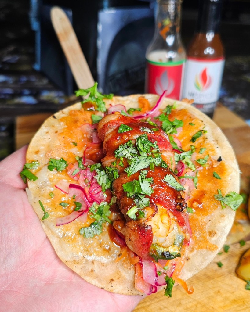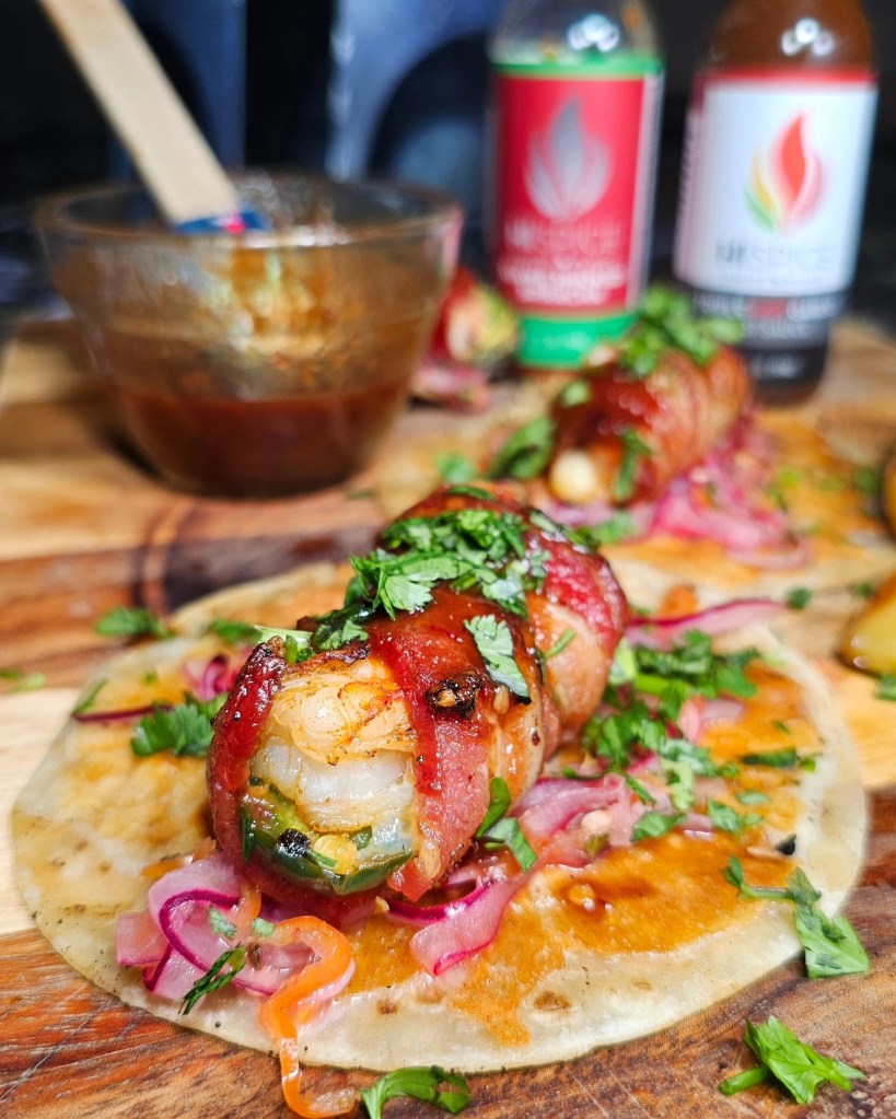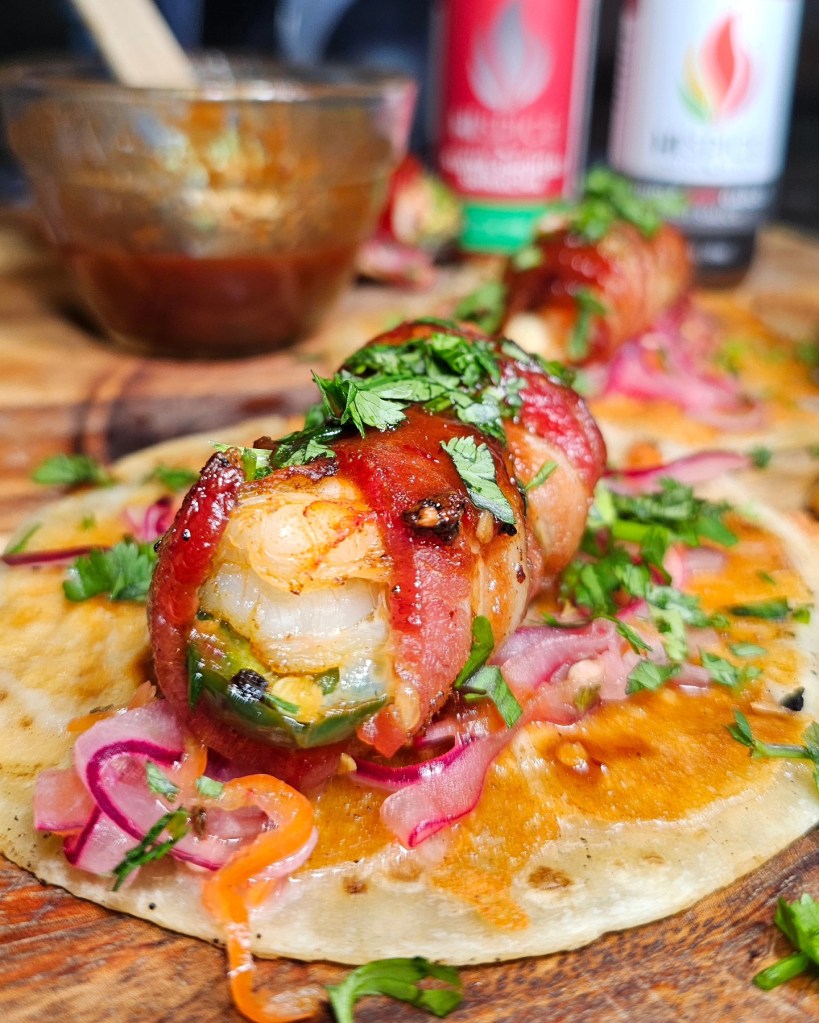 BACON WRAPPED SHRIMP & QUESO STUFFED JALAPEÑO TACOS