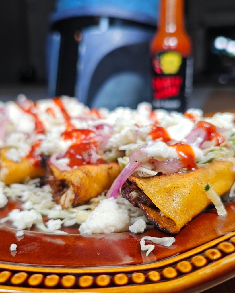Since I still had birria left over, I figured I’d make some crispy golden tacos, which are basically my favorite type of taco.