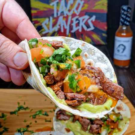 TACO DAY 899/1000 WAGYU TACO DORADOS WITH THE TACO SLAYER HOT SAUCE